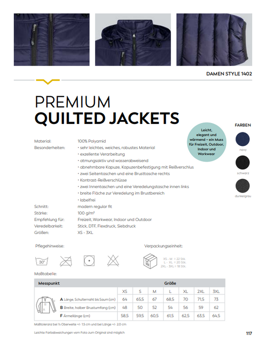 Damen Premium Quilted Jacket Individuell bestickt (zzgl. Stickerei)