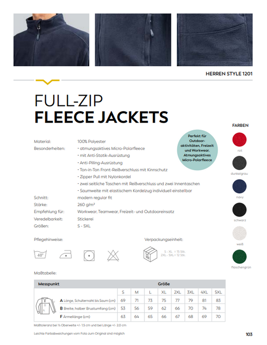 Herren Full- Zip Fleece Jacket Individuell bestickt (zzgl. Stickerei)