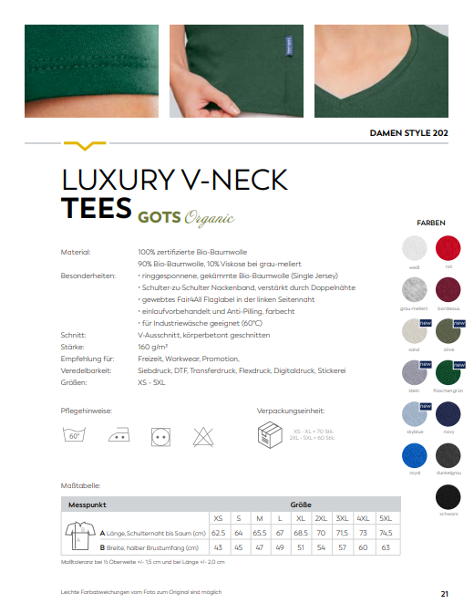 Damen Luxury V-Neck Tees Individuell bestickt (zzgl. Stickerei)