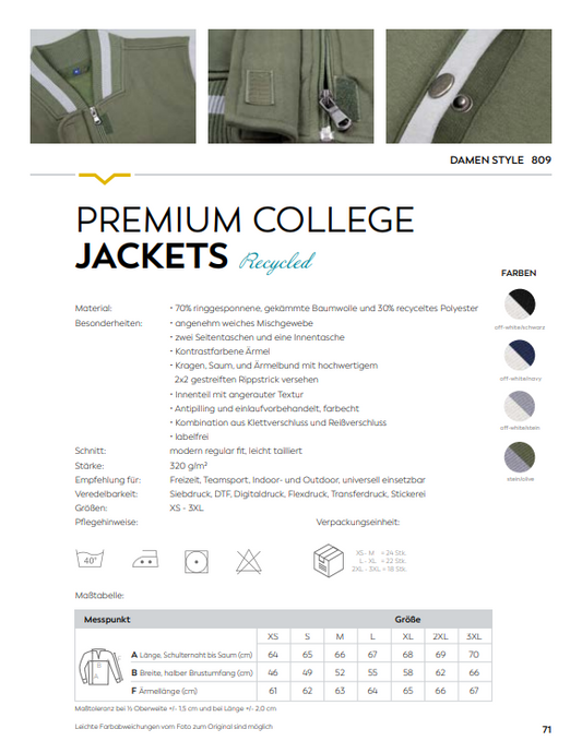 Damen Premium College Jacket Individuell bestickt (zzgl. Stickerei)