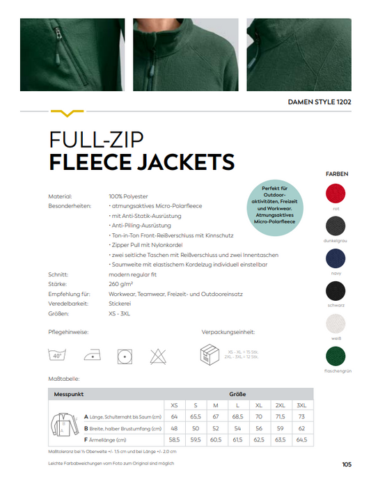 Damen Full- Zip Fleece Jacket Individuell bestickt (zzgl. Stickerei)