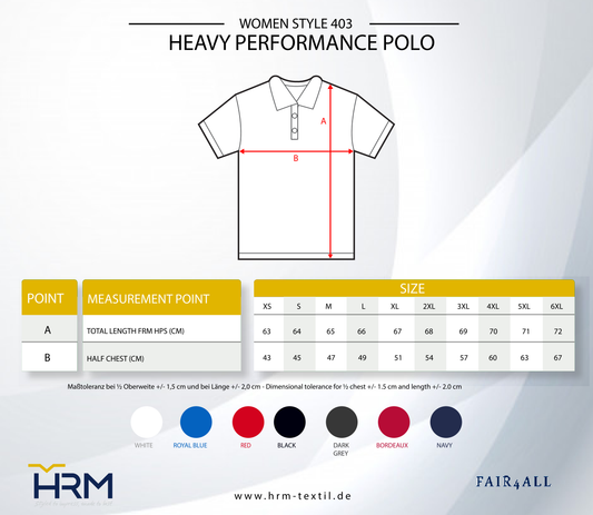 Damen Heavy Performance Polo 403 Individuell bestickt (zzgl. Stickerei)