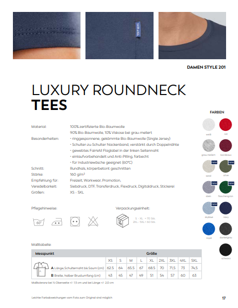 Damen Luxury Tees Individuell bestickt (zzgl. Stickerei)